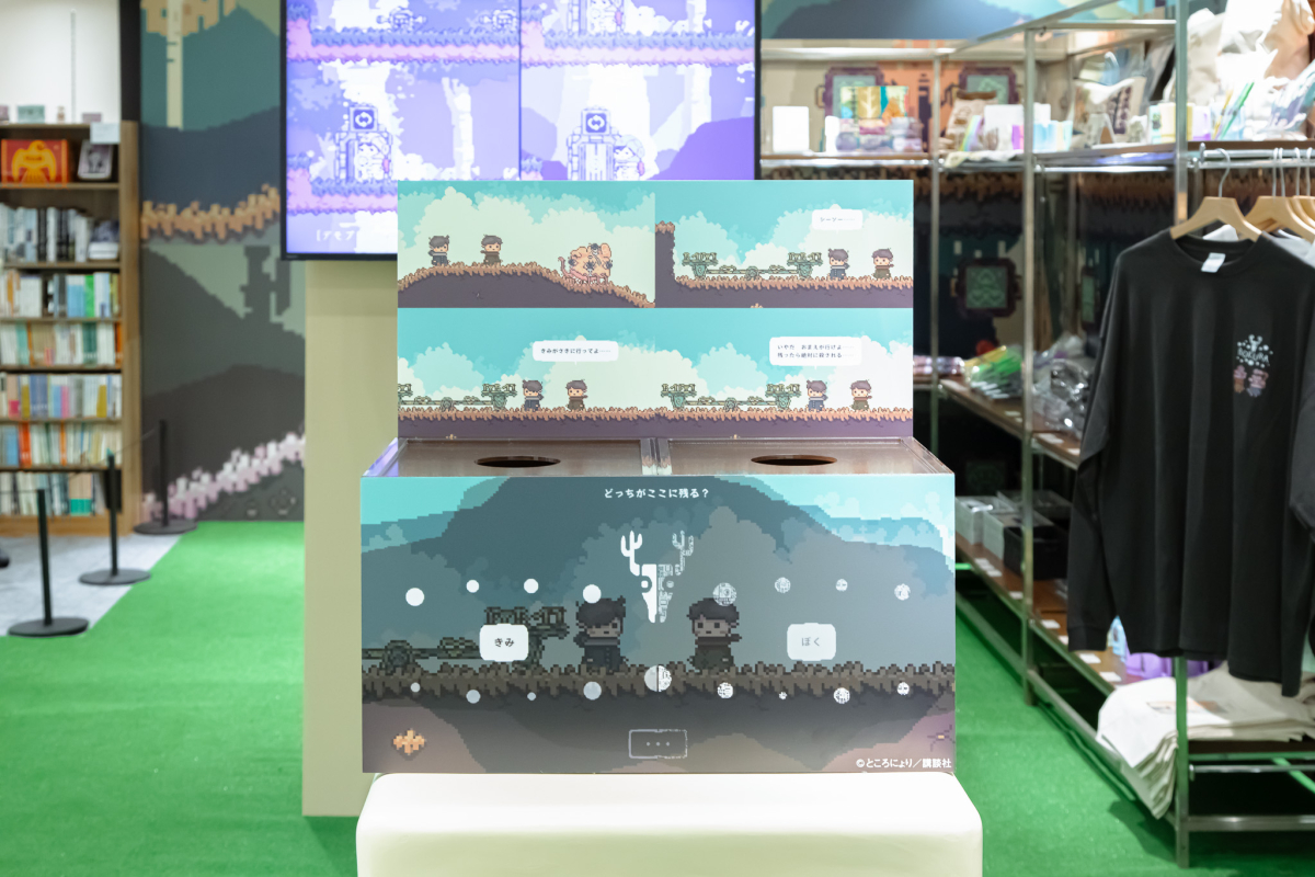 ゲームになぞらえ、本会場で“見えている景色”から“得られる情報”によって購入できる限定グッズをご用意。実際のゲームをしているような感覚で楽しめる展示となります。