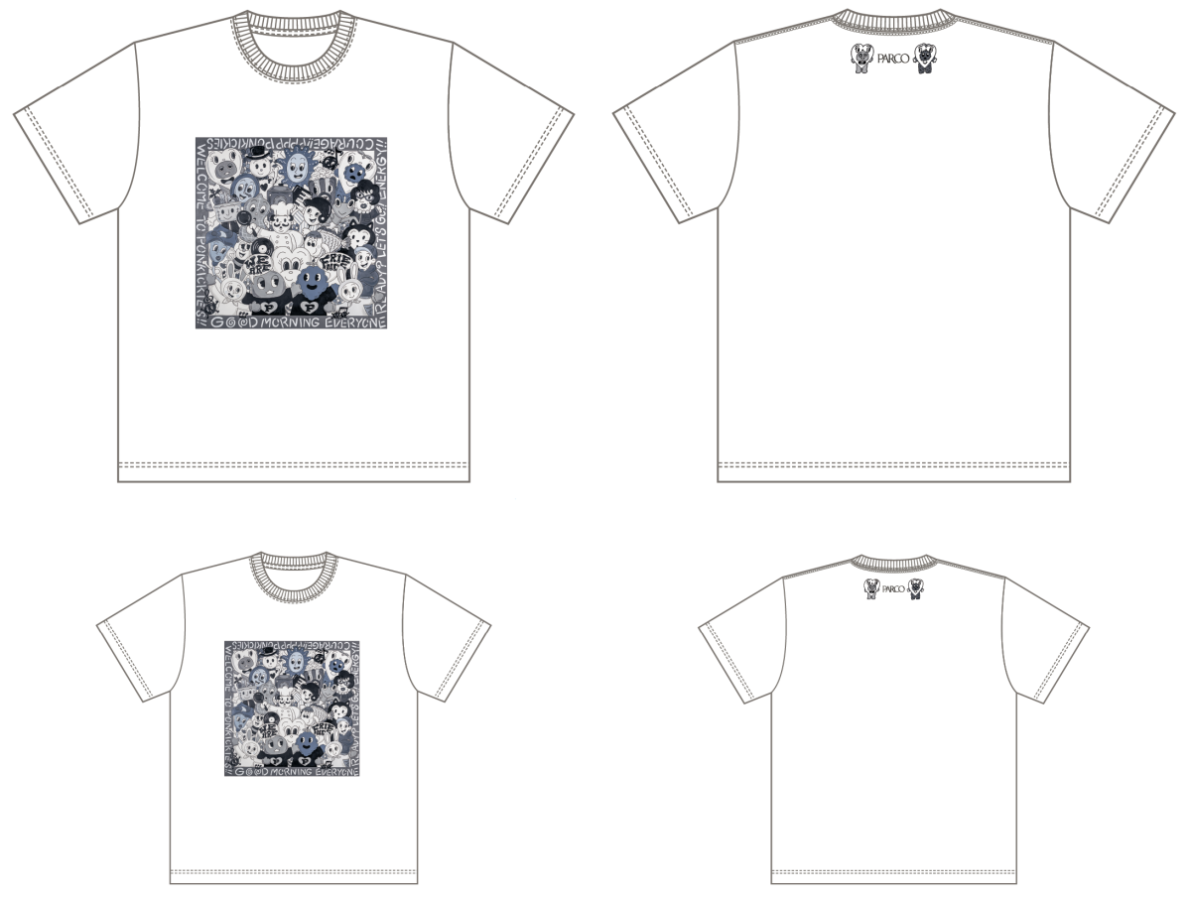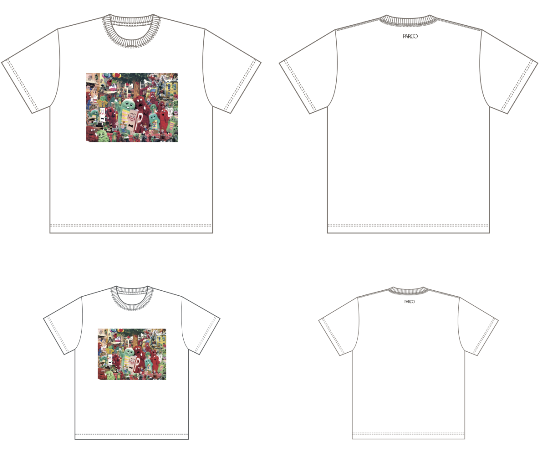 展覧会開催を記念した、Tシャツ、キーホルダー、ポーチなどの展覧会記念商品の販売を行います。Pちゃん×PARCOコラボ商品や本展キービジュアルを使用した商品、本展に参加したアーティストとのコラボグッズ等多種多様な商品をPARCO MUSEUM TOKYOにて販売致します。