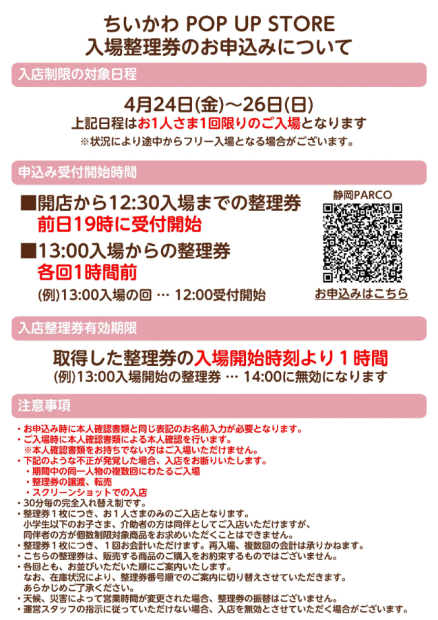 4/24(金)~4/26(日) 入場整理券配布
