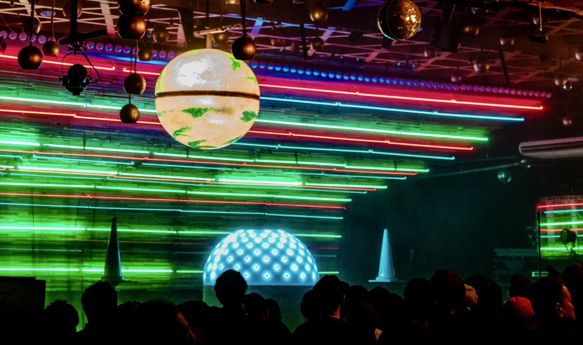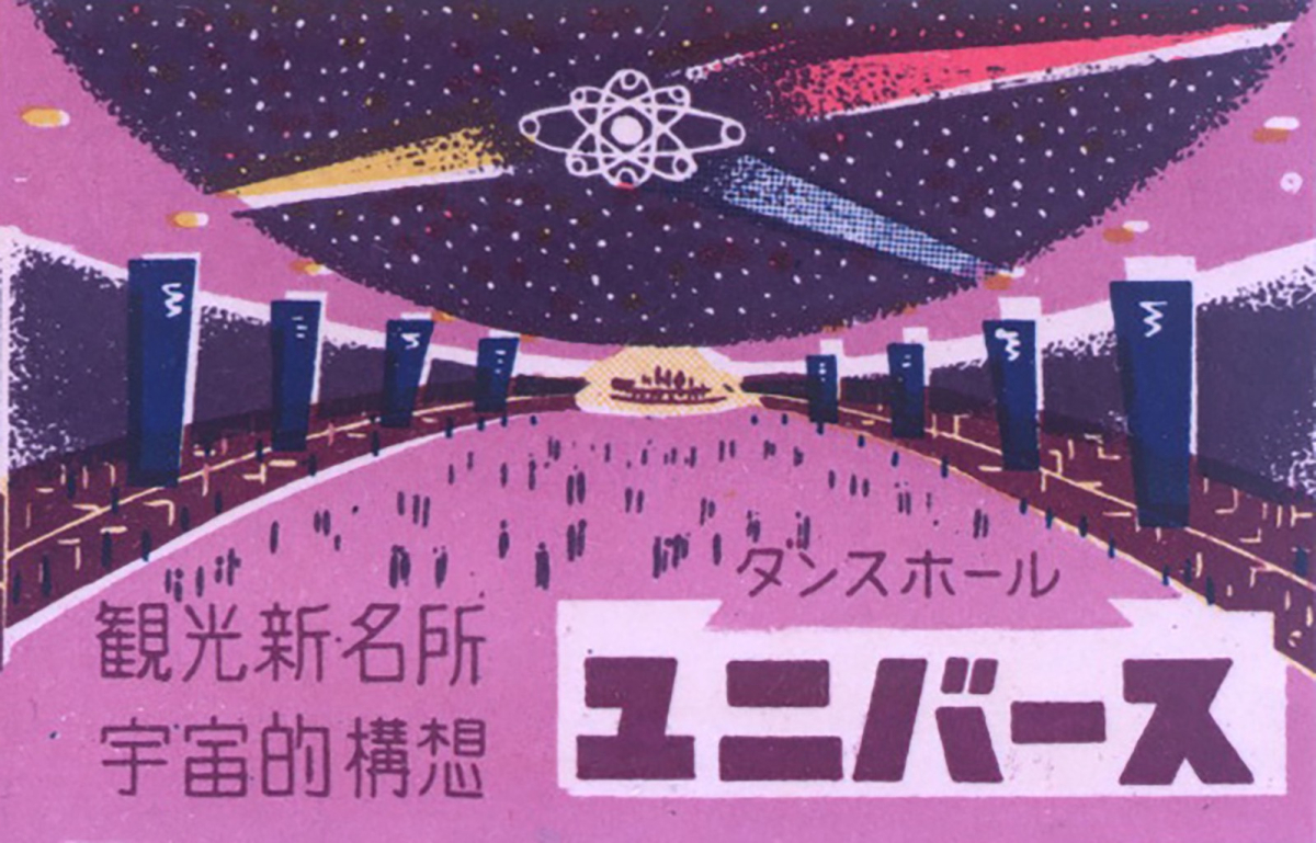 1956年の創業当時にまでさかのぼる貴重な資料や、特徴的な照明・内装を再構築した空間展示を通して、今も大阪の文化に影響を与え続けるこの“宇宙”への思いをめぐらせる。